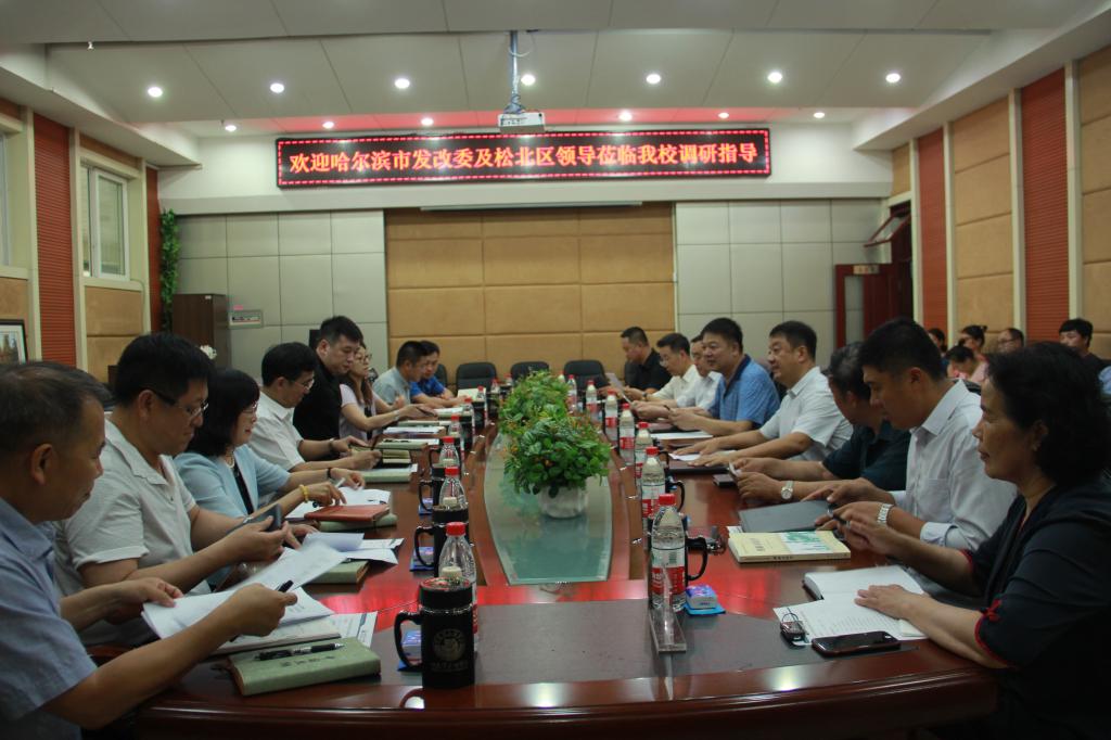 为深入贯彻“不忘初心,牢记使命”主题教育精神,7月16日,由哈尔滨市发改委主任栾志成、松北区副区长万勇、哈尔滨市发改委副主任张晓萍及投资处、工业高技术处、大项目处、社会处及松北区发改局相关同志组成的调研组,到校调研固定资产投资及产教融合等方面情况。