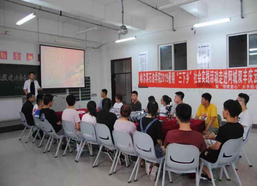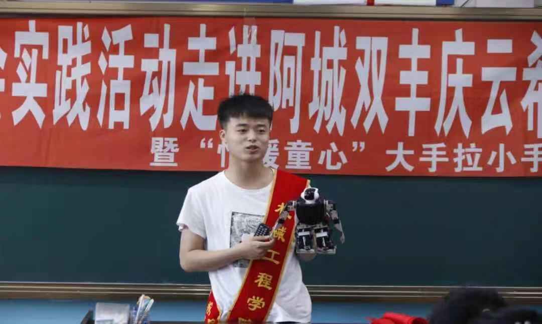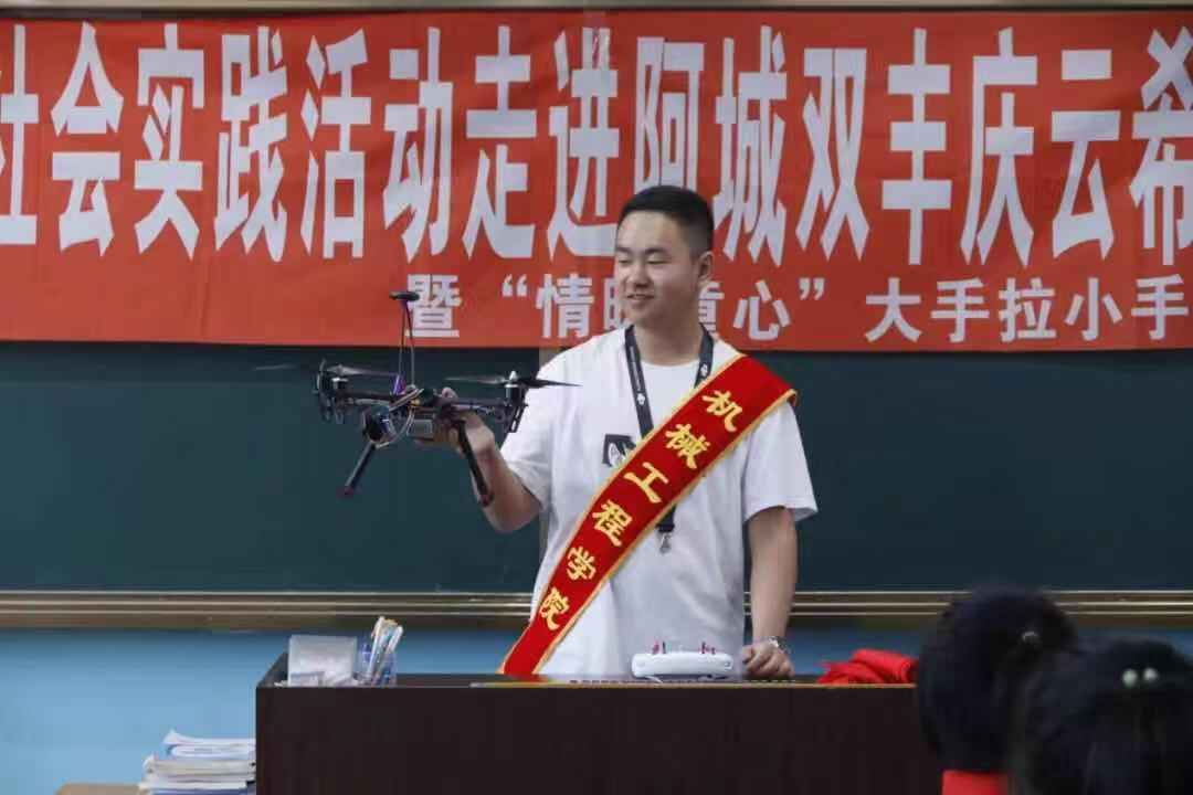 为进一步深入学习贯彻习近平新时代中国特色社会主义思想和党的十九大精神,引导学生在社会实践中了解国情、感知社情、体察民情,充分发挥社会实践在学校人才培养和社会服务体系中的重要作用,2019年7月15日,雷竞技raybet官网版下载机械工程学院团总支书记徐靖宇老师带领志愿者们共赴哈尔滨市阿城区双丰庆云希望小学开展了以“大手拉小手,科技进校园”为主题的2019年暑期科技下乡社会实践活动。为更好的开展此次活动机械工程学院团总支前一天在雷竞技官网召开了本次三下乡社会实践活动筹备会议。会议上,雷竞技官网机械工程学院团总支书记徐靖宇对此次活动的开展时间、流程、物资筹备等方面进行了布置,同时展示了雷竞技官网的志愿者们为本次活动自制的祝福明信片、3D打印模型及志愿者们对机器人和无人机技术课程的讲解。
