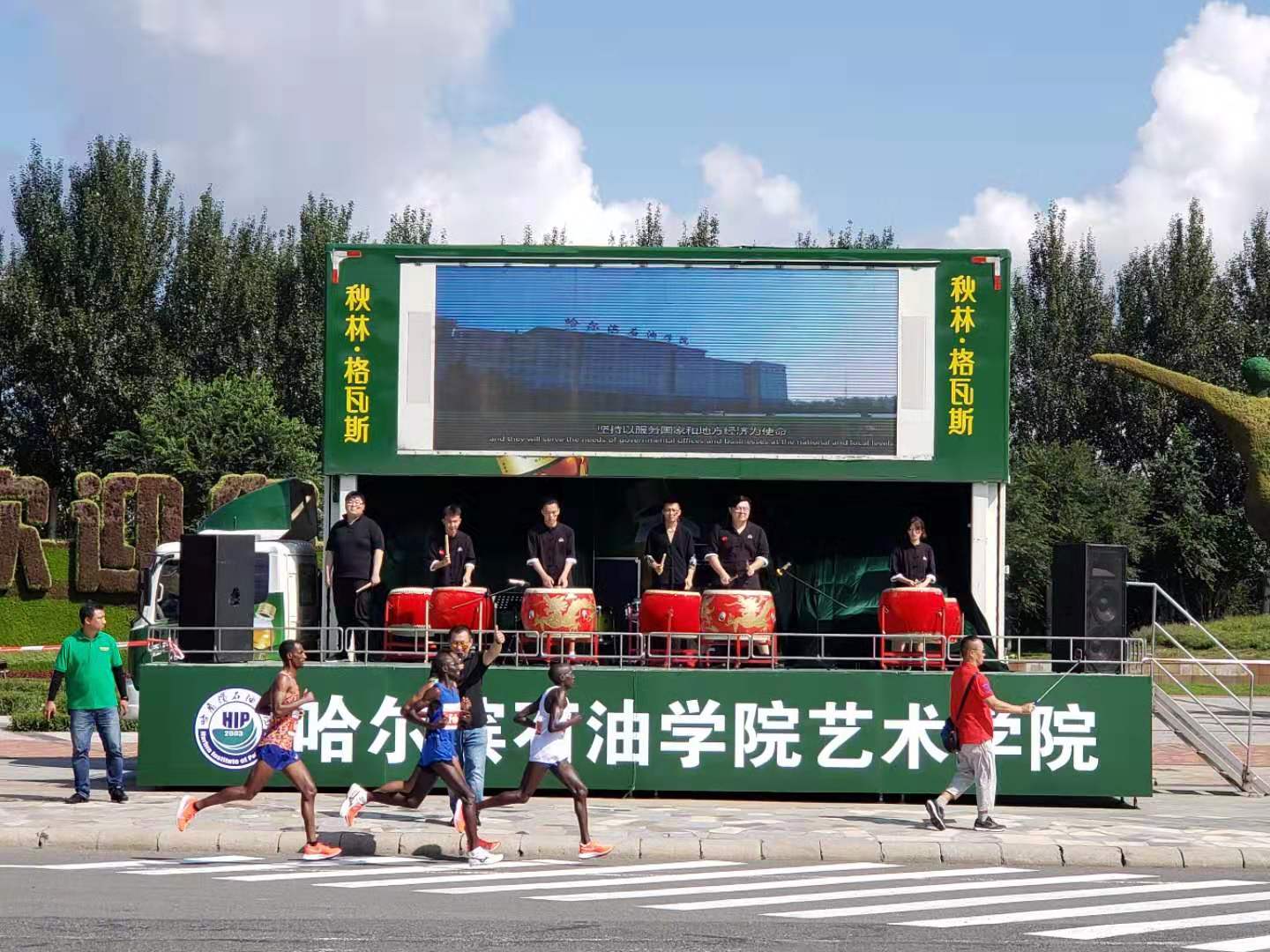 此次活动我院携手秋林格瓦斯有限公司负责马拉松赛程中的加油助威及饮品服务工作,为保证提前到岗进行服务,我院志愿者们提前穿好指定服装,带好所需物品,在雷竞技官网公寓楼集合后,于凌晨4:30准时出发。本次服务从4点30分到下午2点,志愿者们在工作人员的安排下,各尽其责,有序的开展工作。时间长,任务重,哈油学子发扬不怕苦,不怕累的精神,坚持完成指定工作,充分发扬了我院学子的优秀品格。参赛的哈马选手纷纷向我院鼓乐队点赞,表示感谢!