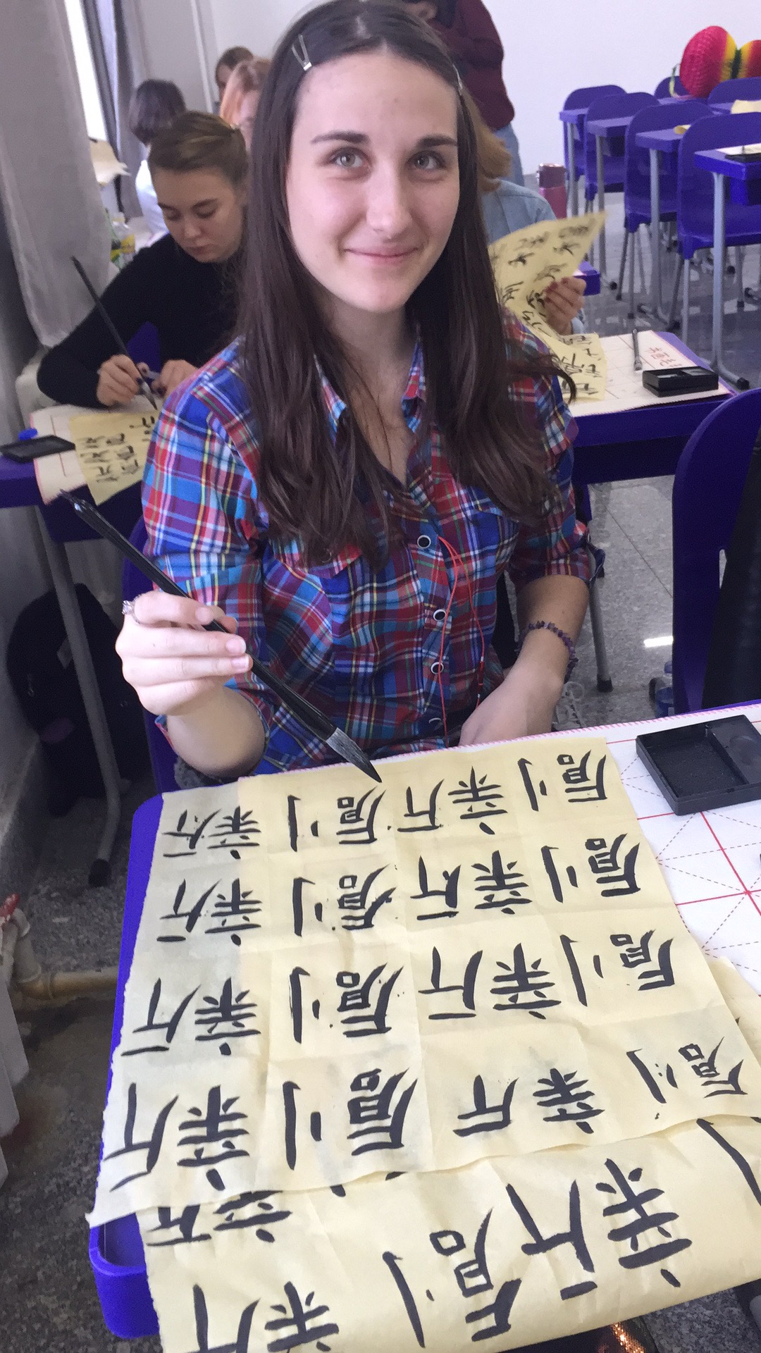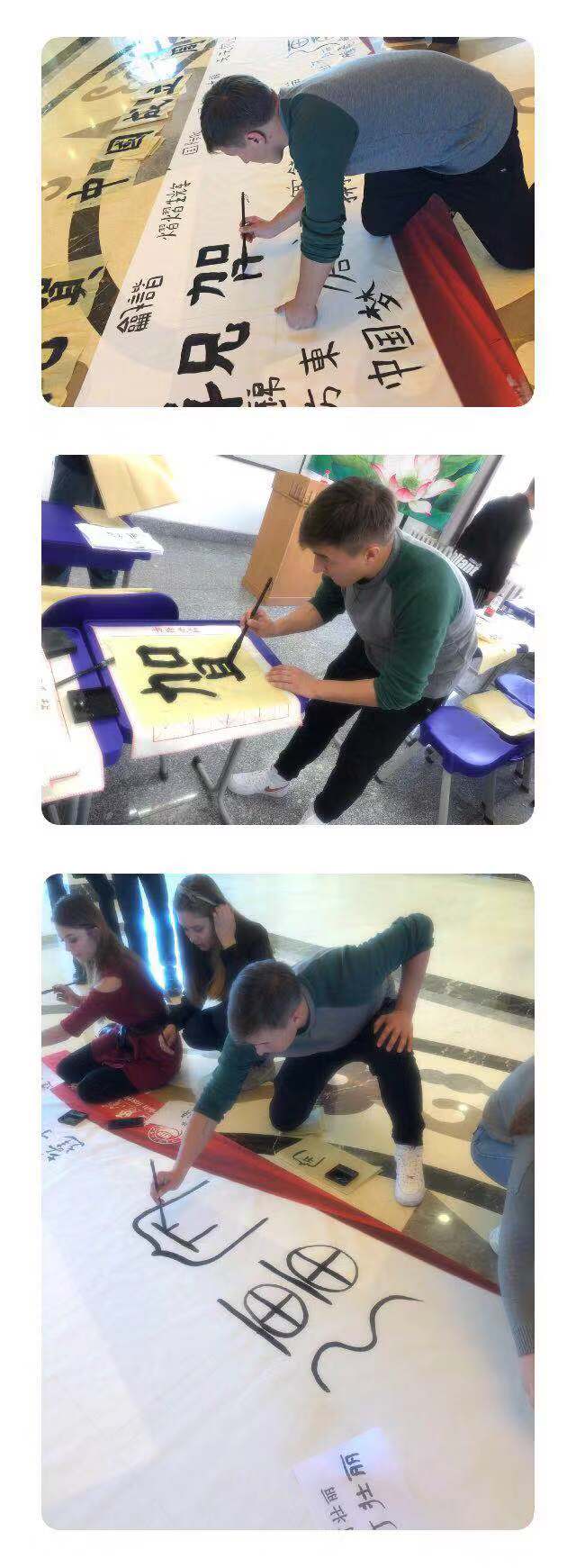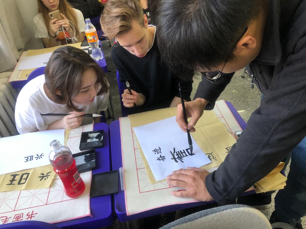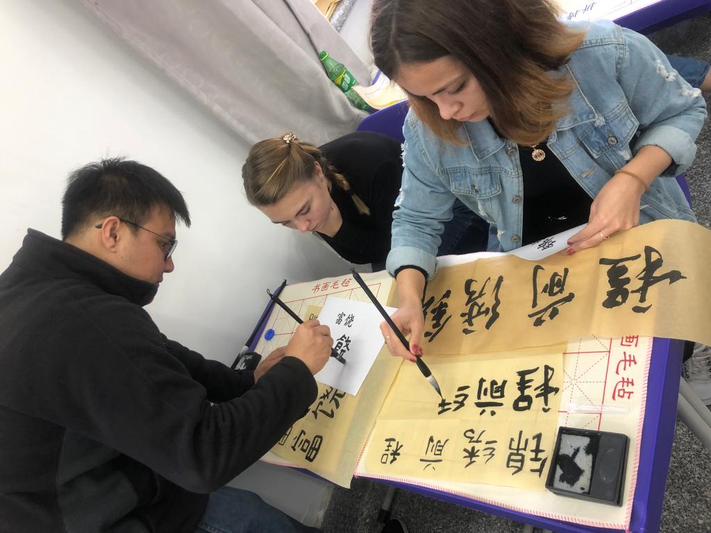 “I like Chinese culture very much. I learned the meaning of it by writing. Reading and practicing calligraphy is an important way for me to understand Chinese traditional culture. I learned to write the congratulations on the 70th anniversary ofPRCfounding. Thesewords are very good," said Dima, a foreign student from Russia.