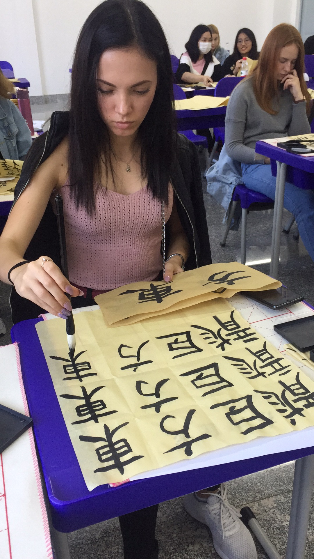9月27日,国际教育学院为留学生开展中国传统文化体验课,由徐健老师为外国留学生讲授书法和篆刻的艺术。中国书画是我国历史发展长河中一条重要支流,它以丰富的品类,独特的风格,巨大的成就,矗立在世界美术之林,成为了民族的骄傲。此次的讲解让更多的外国留学生,了解到中国书画艺术的博大精深与艺术魅力,深受外国留学生的喜爱。留学生们亲身体验中国书法的独特魅力,展现学习中文的丰硕成果,高质量的书法作品让大家赞叹不已。