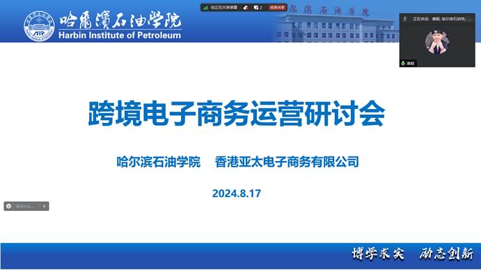 本次研讨会围绕数字贸易背景下跨境电商高素质技能型人才培养,校企双方共同探讨跨境电商专业人才培养的创新路径。研讨会上,香港亚太电子商务有限公司唐毅经理首先对公司的经营理念、运营模式、运营平台、具体操作流程以及校企双方可以合作的领域进行了简单的介绍。