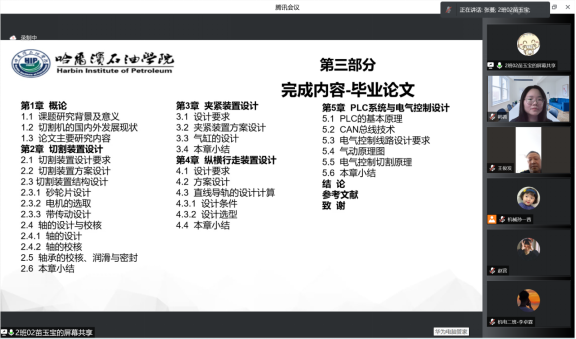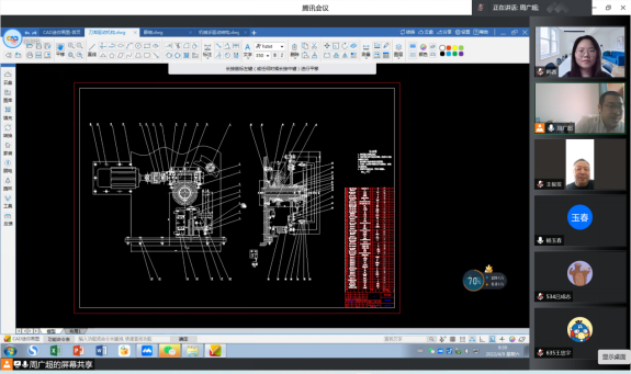 本次检查共分11个检查小组,34位教师和353位同学共同参加。每组分别建有检查微信群,并设有教师和学生的检查组长,便于学生和老师联系。此次线上检查工作采用腾讯会议直播平台,利用屏幕共享,每个学生按照规定的顺序依次进行线上PPT展示,主要从目前已完成的工作、遇到的问题与下一步的计划等方面进行汇报。检查组教师对学生的问题进行解答,对论文初稿和设计图纸进行初步检查。所有小组的中期检查均顺利完成。