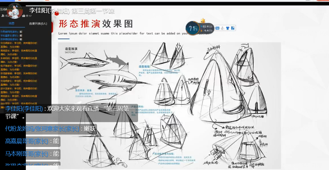 第二:实践类需做示范的内容。进行视频、直播示范、PPT注解综合应用,可提前准备好手绘视频分屏幕播放,直播语音讲解内部细节,也可用直播支架用手机直播画板,让学生清晰的看到绘制的过程及注意事项。存储直播回放,可以让学生随时上线观看老师已讲过的内容。