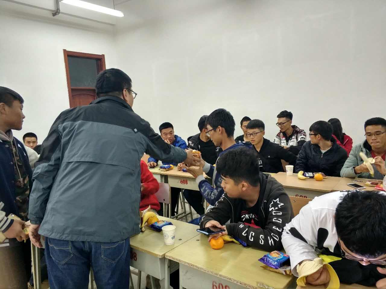 金风送爽,丹桂飘香。中秋节到来之际,恰逢国庆长假,到处都呈现一片祥和的节日氛围。由于我院人数众多,很多外省市学生因为回家路途遥远而选择留在学校过节,为了让留校同学在节日中远离思乡离愁,愉快地度过这个中秋,学院党总支书记苏永彬和团总支书记徐靖宇老师在10月4日当晚特地来校看望留校过节的所有学生,苏永彬书记首先表达了学院对于学生的祝福和关心,希望同学们能够欢度佳节,愉快的完成大学生活,随后两位老师为每一位同学发放学院精心准备的月饼和水果等食物,还一起在608教室观看新上映的电影“羞羞的铁拳”,整晚欢笑声不断,机械师生一起共度中秋佳节。