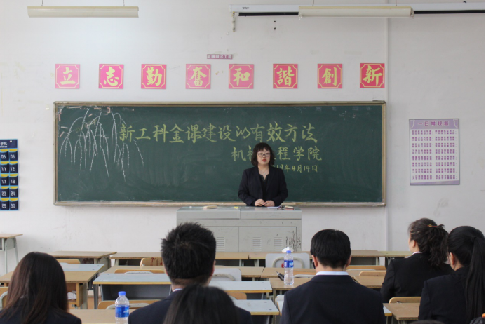 为贯彻落实《关于加快建设高水平本科教育全面提高人才培养能力的意见》和《教育部关于狠抓新时代全国高等学校本科教育工作会议精神落实的通知》等文件精神,进一步提高雷竞技官网课程建设水平,2019年4月14日下午机械工程学院在主教507教室组织召开了以“新工科金课建设的有效方法”为主题的会议。由高宇博老师为主讲人,机械工程学院全体教师参加会议。
