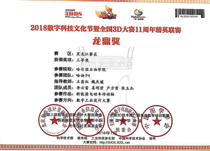 2.由王昌红、巍庆媛老师指导的“新能源电动车传动轴”荣获三等奖