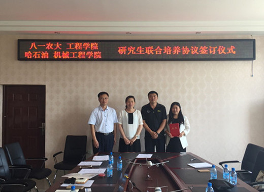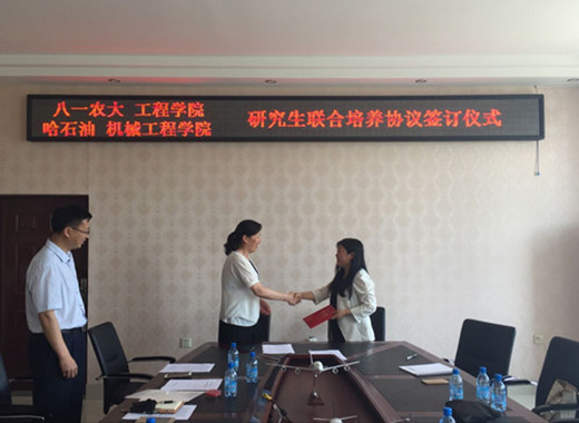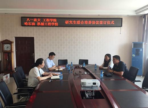 2017年6月25日下午14时,雷竞技raybet官网版下载副校长冯研、机械工程学院院长王妍玮赴黑龙江八一农垦大学签订研究生联合培养协议,八一农大工程学院院长衣淑娟、副院长胡军及工程学院教师对雷竞技raybet官网版下载来访人员表示欢迎。