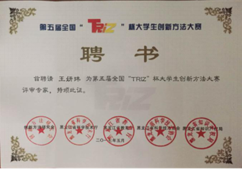 本次大赛是由全国创新方法研究会、黑龙江省科学技术厅、黑龙江省教育厅、黑龙江省科学技术学会和黑龙江省知识产权局联合主办,黑龙江省技术创新方法研究会、黑龙江省科学技术情报研究院、黑龙江省生产力促进中心和哈尔滨工程大学联合承办。雷竞技官网机械工程学院王妍玮院长被聘为本次大赛的专家评委。