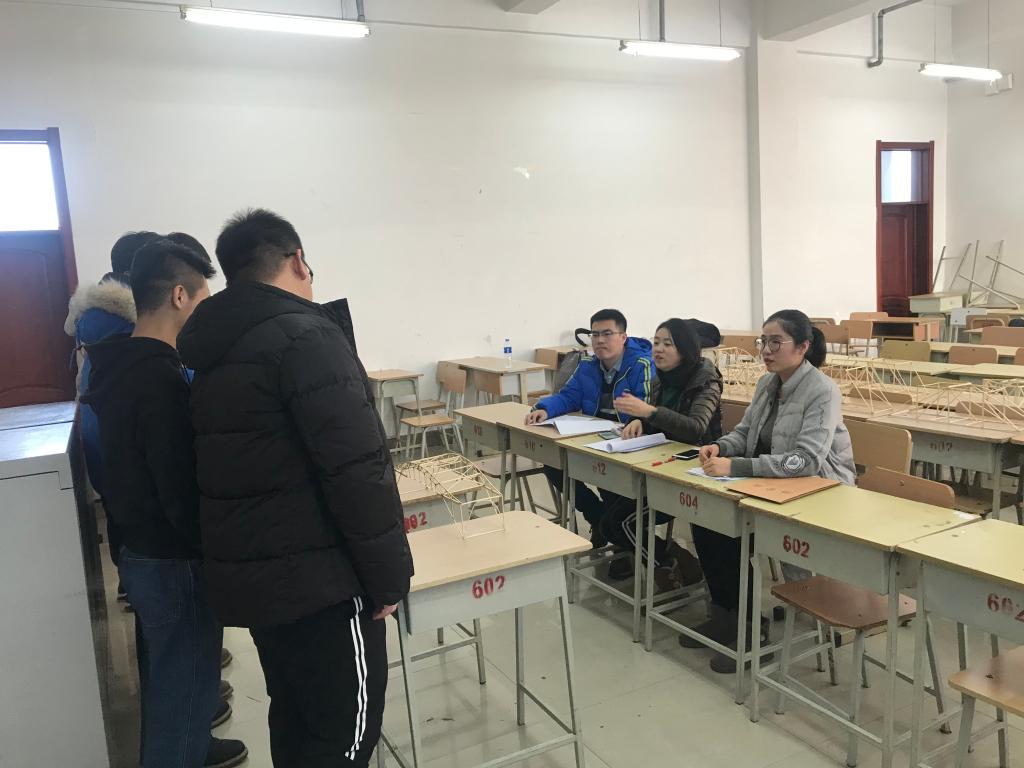 为深刻贯彻OBE教学理念,进一步激发学生的工程结构创新意识,培养学生的创新思维、团队协作和实践能力,加强学生之间的交流与合作,提高人才培养质量,营造校园科技文化氛围,土木工程学院2017级土木工程专业(道桥方向)开设了为期1周的《工程结构创新设计》实践环节,并于2019年12月20日在主教602教室进行了加载试验与小组答辩环节。土木工程学院教师于姜涛、刘洪瑞作为本次答辩的评委。