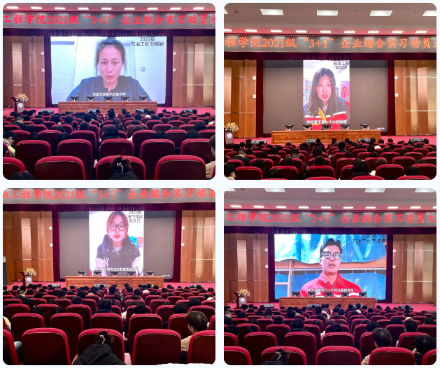 为进一步做好“3+1”企业综合实习教育指导工作,3月5日,石油工程学院在图书馆报告厅召开“3+1”企业综合实习动员大会。石油工程学院院长李岳祥、党总支书记刘雁春、副院长朱砂、办公室主任赵昕、2021级辅导员王娜出席本次大会,全体2021级学生参加本次动员大会,会议由2021级辅导员王娜主持。