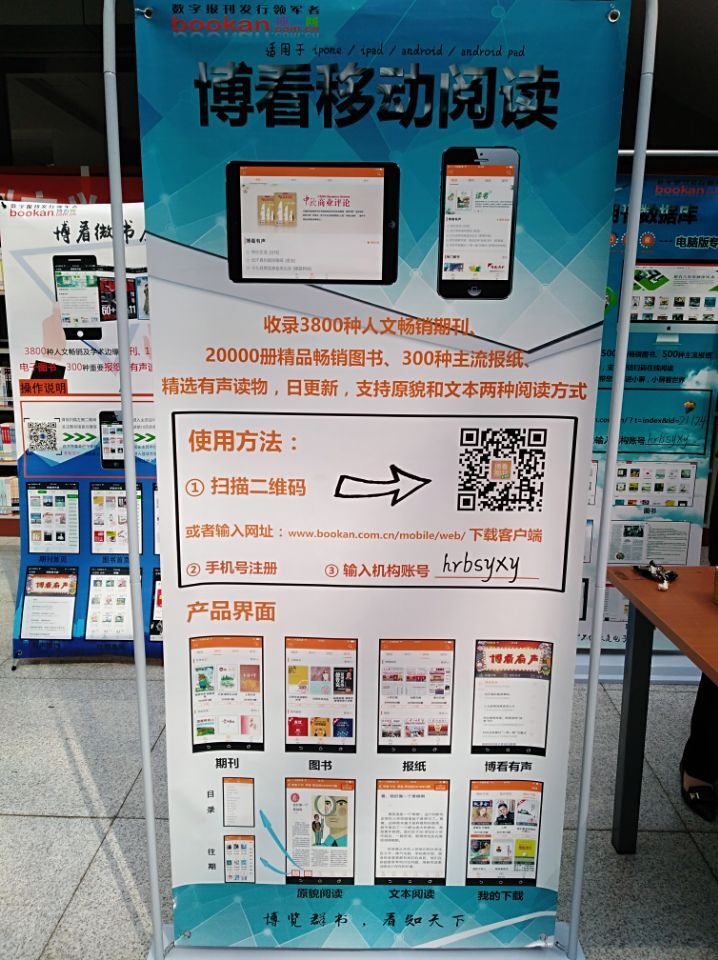 推广活动现场,我馆刘凤玉、姜薇、李雪等老师等向读者详细介绍了博看移动数字期刊的各项功能,并帮助读者现场安装客户端,读者通过登录雷竞技raybet官网版下载图书馆(账号&密码:hrbsyxy)即可享用丰富的期刊、报纸资源,同时,读者也可在我馆大厅内的博看触摸屏借阅一体机上进行期刊借阅。