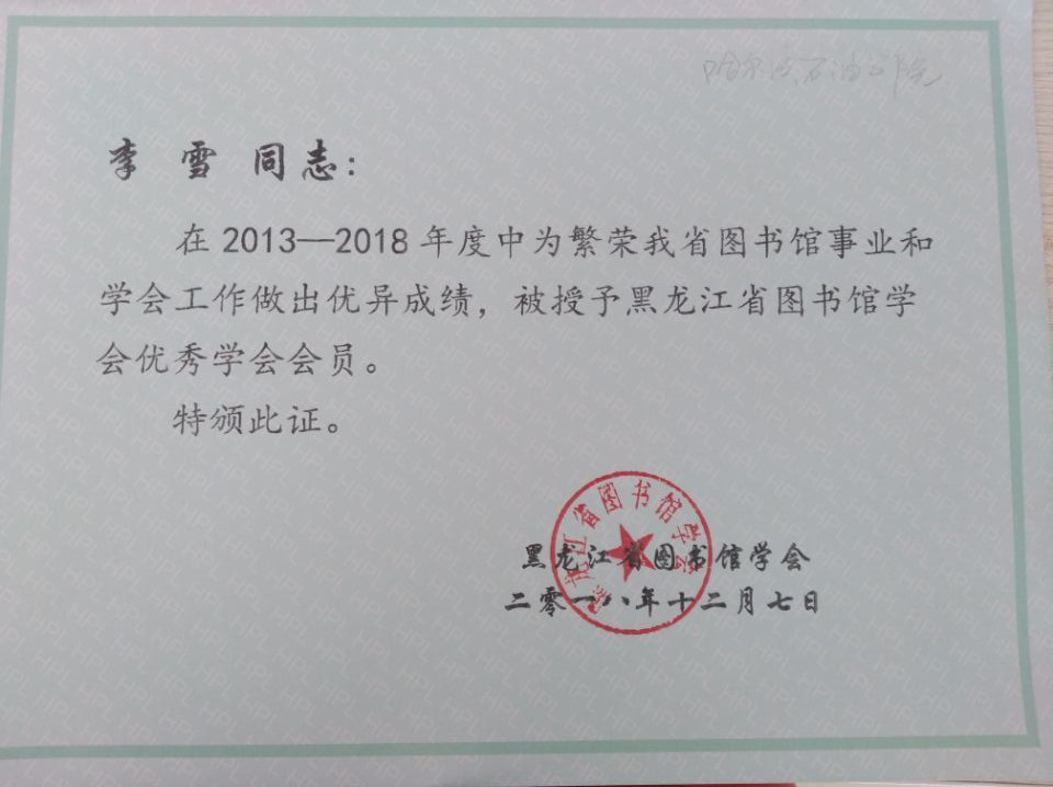 6月3日,2018年度黑龙江省高校图书馆馆长年会在哈尔滨工业大学举办,在会议上,雷竞技官网图书馆姜薇老师被授予首届黑龙江省高校图书馆“最美馆员”称号、李雪老师被授予2013—2018年度黑龙江省图书馆学会优秀会员称号。
