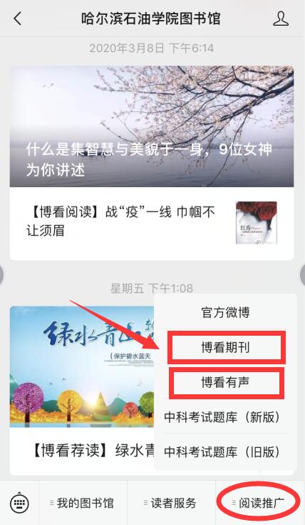 只要关注“雷竞技raybet官网版下载图书馆”微信公众帐号,点击下方-“博看微刊”or“博看有声”,既可自由读阅博看期刊,电子书和报纸,又可以倾听海量的期刊和图书资源。期刊不但可以看到当期,还可以看到往期,并实现检索、收藏、分类浏览,还可以把喜欢的内容分享给微信好友,QQ好友,朋友圈等。