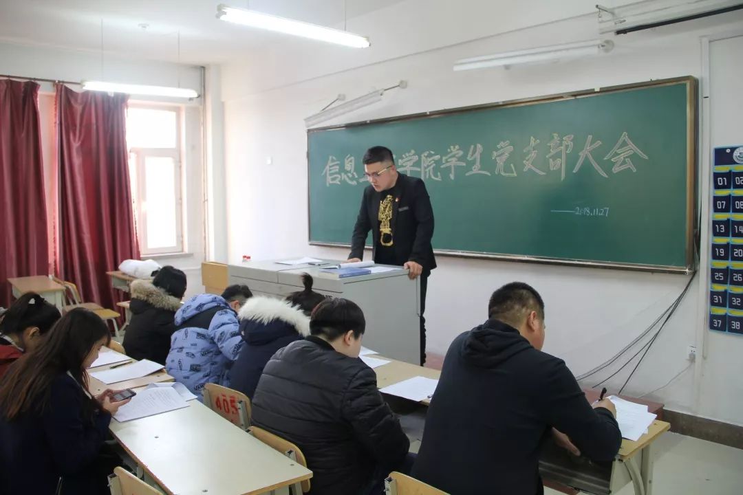 近日,中共中央组织部颁发《中国共产党支部工作条例(试行)》,将进一步升华主题:“两学一做”学习教育,引导支部党员明确支部的性质和地位。教育学生党员以支部为家,积极主动参与支部建设和组织活动。信息工程学院学生党支部于11月27日召开学生党支部大会,组织全体党员同志进行学习。会议由学生党支部书记黄家政同志主持。